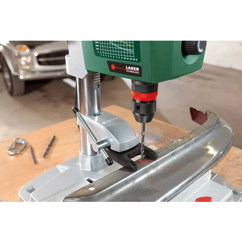 - Met behulp van de snelspanklem kunnen zelfs ronde werkstukken makkelijk bevestigd worden – voor een absoluut precies boorresultaat