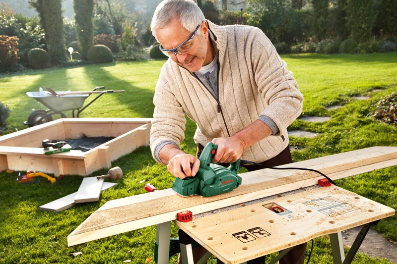 De elektrische schaafmachine PHO 1500 van Bosch garandeert een gelijkmatige spaanafname en een hoge oppervlaktekwaliteit. De gecombineerde geleidings- en spaandiepte-instelknop zorgt voor precisie en een veilige geleiding van het gereedschap. De krachtige 550-watt-motor van de PHO 1500 maakt het schaven bovendien duidelijk eenvoudiger en sneller. Op deze manier slaagt u erin om helemaal zonder krachtsinspanning absoluut gladde oppervlakken en exact afgeschuinde hoeken te verkrijgen.