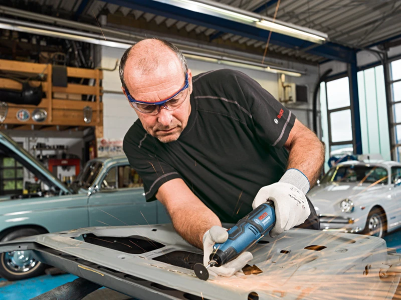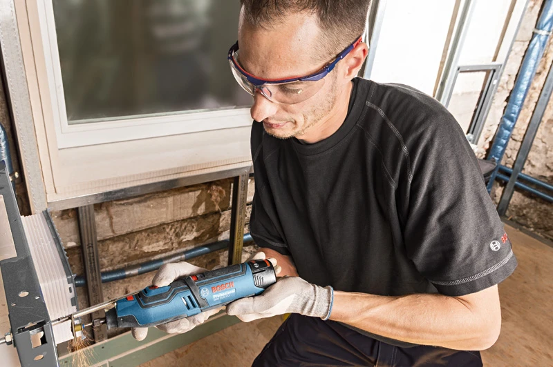 - Veelzijdige professionele toepassingsmogelijkheden zoals zagen, schuren, frezen, polijsten en boren, ook mogelijk op moeilijk bereikbare plaatsen