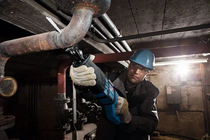 Reciprozaag. Hoogste bedieningscomfort : Bij het Bosch SDS Zaagwisselsysteem is een draai voldoende en het gebruikte zaagblad is uitgeworpen. Verbrande vingers behoren hierdoor definitief tot het verleden. Met een hand en een klik kan het nieuwe zaagblad ingezet worden. Rustige loop en elektronisch geregelde toerentallen, geleverd in koffer.
